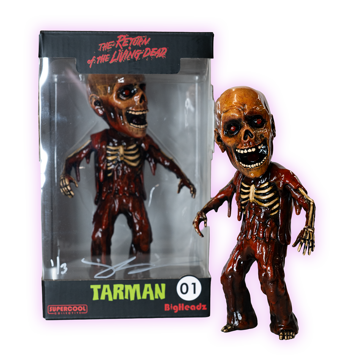 Behold the "Blood Moon" variant—a haunting take on the Tarman BigHeadz figure crafted by Josh Schneider. This custom creation channels deep crimson and shadowy tones that evoke midnight rituals and lunar mystique. Ideal for collectors drawn to darker aesthetics and supernatural themes, this piece transforms the classic character into something altogether more sinister and captivating. A striking addition that brings gothic flair and artistic edge to your display.