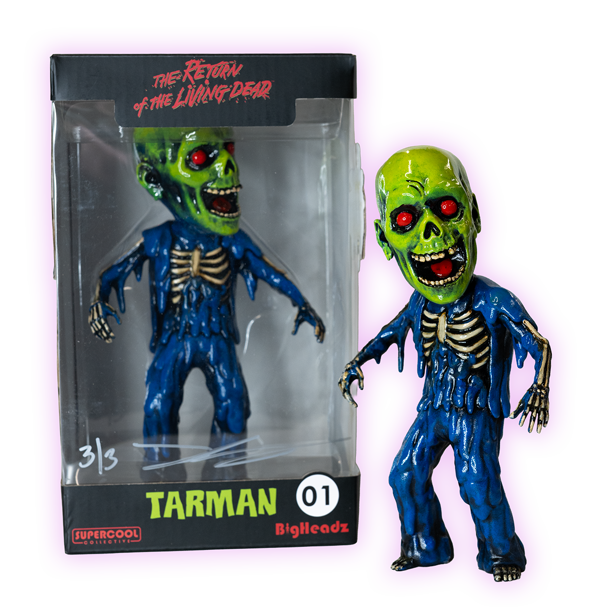Meet the ultimate villain mashup: a custom-painted Tarman BigHeadz figure transformed into the iconic Skeletor! Josh Schneider's masterful artistry brings the evil Lord of Destruction to life with stunning detail and vibrant colors. This one-of-a-kind collectible merges retro charm with dark fantasy flair, making it a must-have for fans of He-Man, vintage toys, and bold custom art. Perfect for display or adding serious character to your collection.